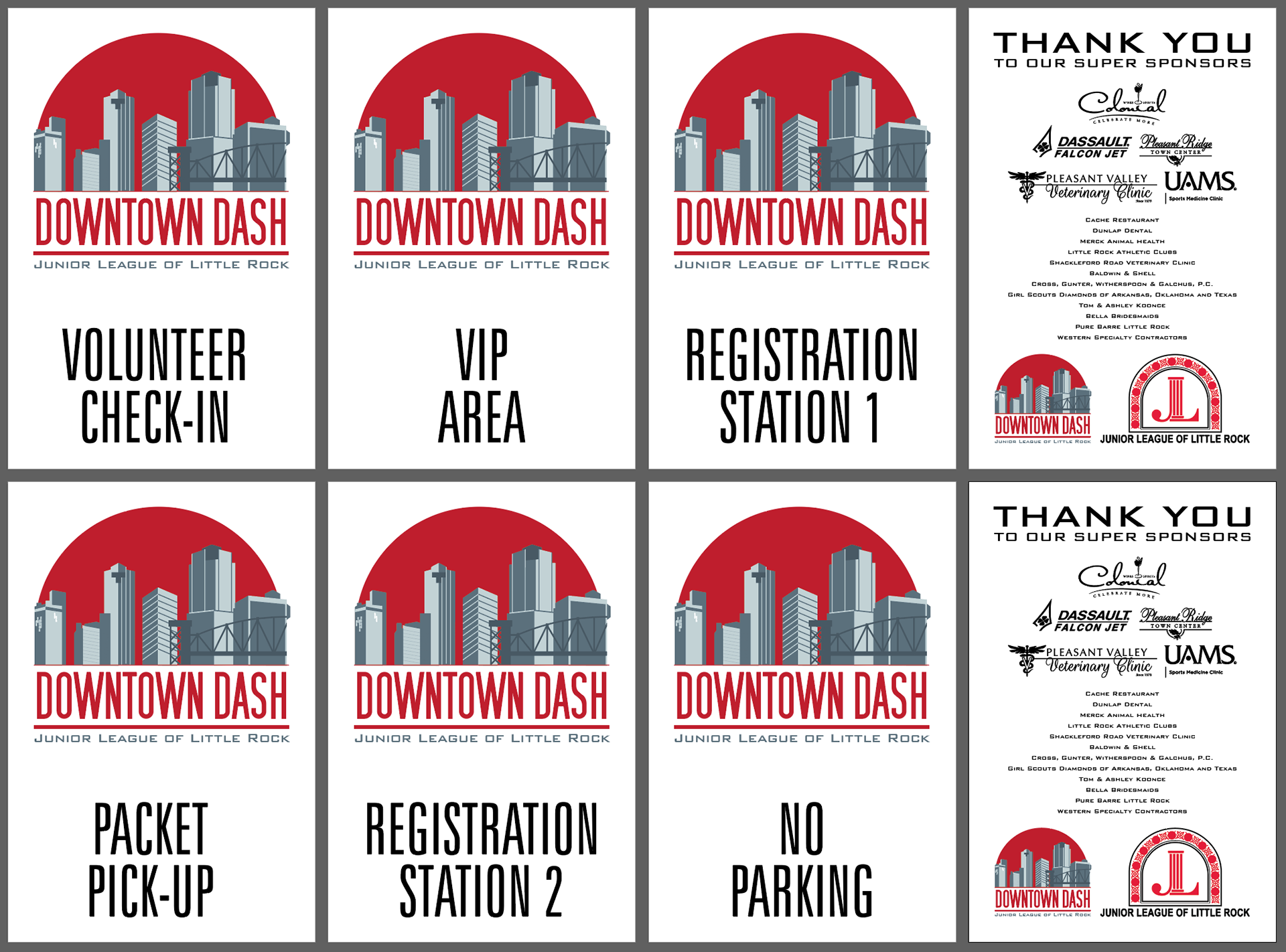 Sponsors were recognized in our online marketing, on participant t-shirts, and on printed race day signage. I made these designs and purchased the signs through the marketing budget.